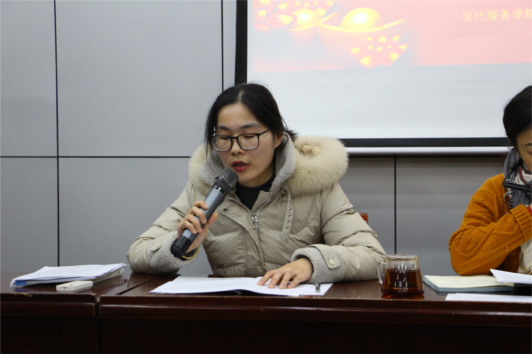 陈聪玮副院长就现代服务学院2023年度三十项重点工作、教学考核细则和绩效考核细则进行了详细的解读和说明,重点强调了党、团建工作、校企合作和招生宣传工作。