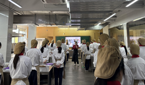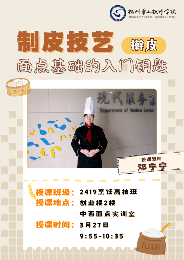 邓宁宁老师以“工匠精神”为核心,构建“导 - 启 - 学 - 练 - 评 - 展”六环实训体系。在课前阶段,她通过微课引导学生预学,帮助学生建立知识框架;课中环节,通过对比机械与手工擀皮的价值,拆解“一擀二压三转”口诀,设计四阶递进训练:空手模拟、模具校准、协作互测、蒙眼盲擀,巧妙融入7S管理强化职业规范,并借助信息化平台实时追踪训练数据,结合自评与互评优化操作。课后环节则开展“毫米挑战赛”,以直径8cm±0.3mm的量化标准驱动学生精准控制,通过误差分析反哺匠心塑造,实现技能标准化与职业使命感的双轨融合,为学生夯实面点师核心素养根基。