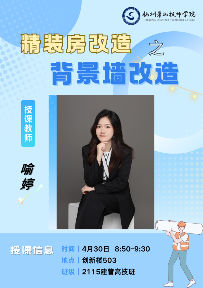 喻婷老师以真实工程案例贯穿全程,选取精装房改造项目为载体,践行"工学一体"教学模式。通过"材料选型→成本测算→方案优化"任务链,指导学生运用《工程定额》《信息价》等工具书,完成背景墙改造。课堂上创新采用"角色扮演",学生分饰采购岗、施工岗、审计岗,完成材料清单编制、材料采购选配、综合单价分析等实操任务。将理论知识转化为解决实际问题的决策能力,充分体现"学以致用"的融合育人理念。