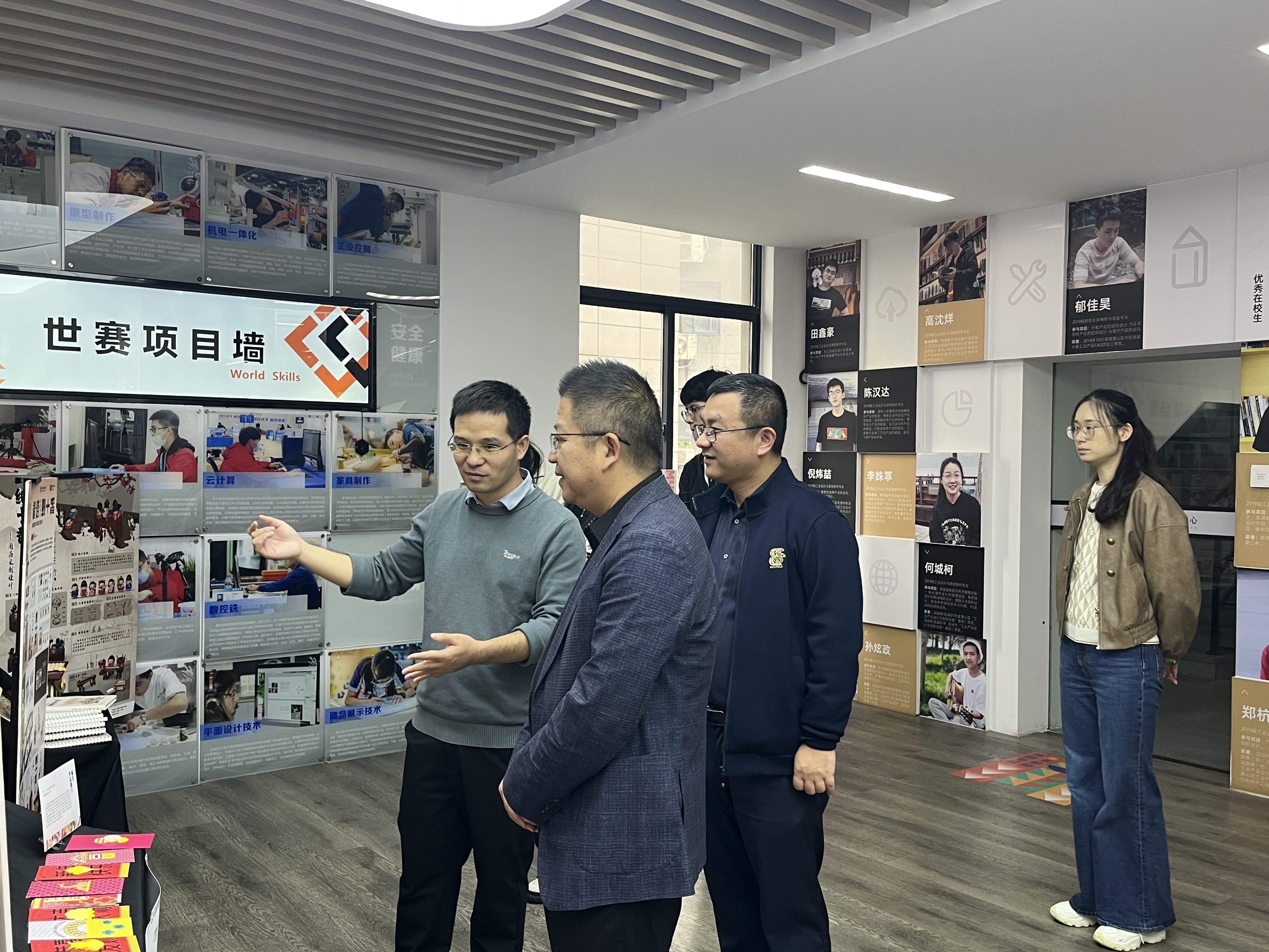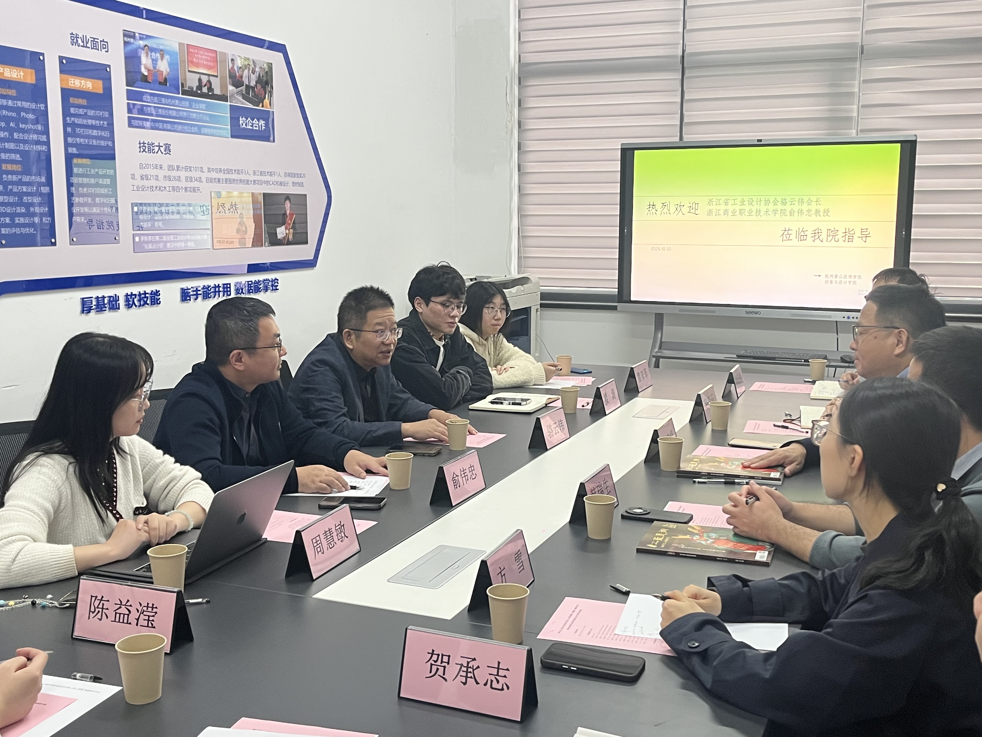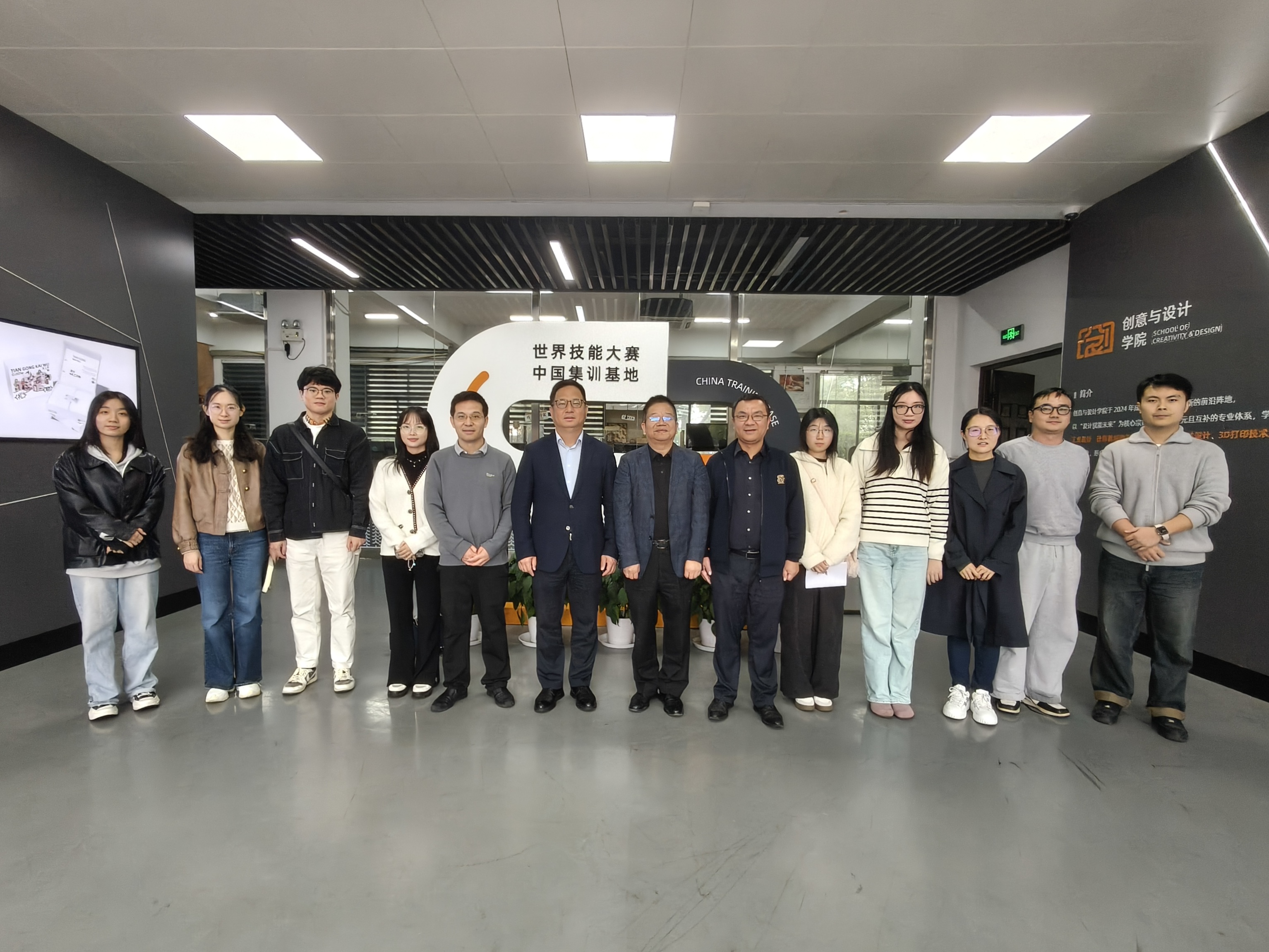 10 月 30 日,浙江省工业设计协会会长骆云伟、浙江商业职业技术学院教授俞伟忠一行莅临杭州萧山技师学院,开展参观指导及专业建设交流活动。杭州萧山技师学院校长鲁建峰、副校长兼创意与设计学院院长韩瑞生、创意与设计学院教学线负责人赵韦茹、工业设计专业组长方雪、平面设计专业组长孙彦卿等陪同参与相关活动。