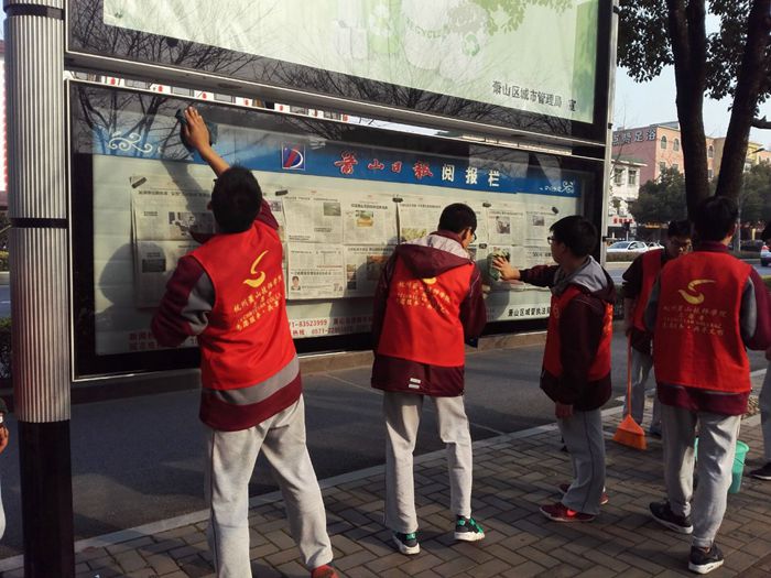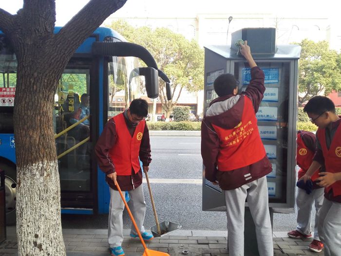 萧山高级技工学校公交站点是萧技学子上学回家的必经站点,为给萧技学子及广大乘客创设良好的候车环境,也为树立我校学子的优良形象,宣传萧技。16—14志愿者服务分队决定展开“扮靓公交站台(萧山高级技工学校站点)”的志愿者活动。