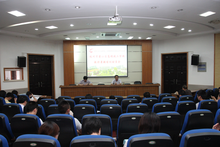 许红平校长作动员词。他说,名师(一流师资团队)、名树(一流校园文化)、名楼(一流办学条件)和高徒(知名校友)是名校的四大支柱,而一流的师资团队是学校的创业之本、竞争之本、发展之本,实施人才强校战略是学校毫不动摇的长久之举、持续之措,学校将常态化实施暑期教师培训工程。随后,他阐述了事业和职业的关系,他说;“事业是干了还想干,职业是干了还得干”,他勉励全体教师要把职业理想转化为事业理想,通过系统培训,让自己的事业资产不断增加。最后,许校长用10个字概况了暑期培训的目的:让我们团队中的每个人成为爱业、乐业、敬业、专业、创业的名师。