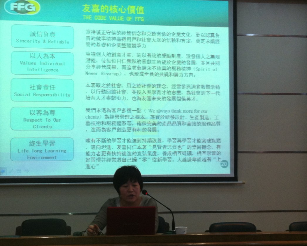 杭州友佳精密机械有限公司人力资源部经理陈敏首先结合企业文化介绍了友佳公司“融入、融通、融会、共创、共荣、共享”的经营理念,诠释了企业“诚信负责、以人为本、社会责任、以客为尊、终身学习”的核心价值观。然后,陈经理结合自己的工作经历,就职场晋升必备的特质和新人的成长成才阐述了自己的观点,她认为培养专注敬业的工作态度和良好的责任感至关重要,并勉励同学们“深耕企业、深根技术”。陈经理的讲话让同学们受益匪浅,赢得了热烈的掌声。