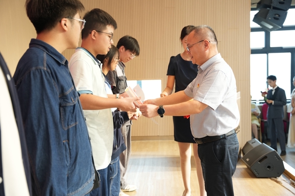 张国维副校长与现代服务学院陈聪玮院长为三好学生颁发奖状;沈剑光副校长与智能设计与智造学院王梁华院长为一等奖学金学子颁发证书,每一次握手、每一个微笑,都满含着对学子们的肯定,也让榜样的力量在现场悄然传递。