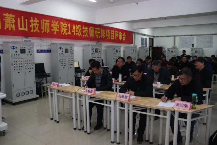 2020年1月11日,我院智能装备技术系对14级电工技师班,共9个研修项目进行了终极评审。本次评审会应邀出出席的评审专家包括来自浙江商业职业技术学院王焕磊副教授、高级工程师胡署敏、浙江传化华洋化工有限公司企业专家王向阳、滨河集团企业专家傅慧俊等企业专家,还有我院许红平院长、王尧林书记、鲁建锋副院长、吴志荣教授等15人到场进行观摩和评审。
