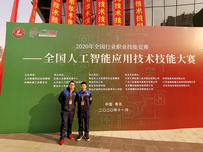 2020年11月26日,2020年全国人工智能应用技术技能大赛在山东青岛举行。在智能传感器应用技术的项目中,杭州萧山技师学院教师张寅锋,王树亮获得了职工组银牌;学生傅哲斌,杨祥同时获得学生组银牌。