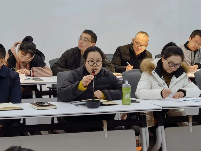 胡玲笑副院长对2021年的教学工作进行阐述。学院要以党建为首,制度引领,稳步有序的开展各项教学工作。主要体现在人才培养方案的进一步完善、教师队伍的打造、教学质量的提升等方面提出了多项举措和目标。另外,她还提到了今年在基地建设和社会服务等各方面的创新工作规划,使全体教师迅速进入工作状态,了解学院重大事项,凝心聚力,只争朝夕,奋发有为,以新境界、新气象、新作为不断推动学校各项工作迈上新台阶。